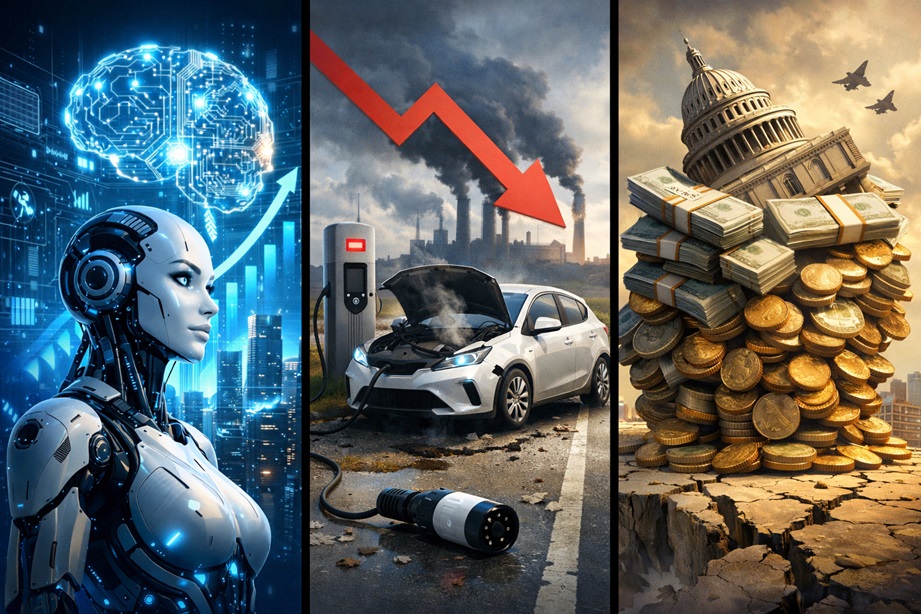 2026年前後の経済ニュースをまとめて見ると、大きな流れが見えてきます。キーワードは「AIの成長」「EVの失速」「国の借金拡大」「賃金の差の広がり」です。バラバラに見えるニュースも、実は一つの流れでつながっています。ここでは内容をやさしく整理し、時系列と分野別に何が言えるのかを説明します。