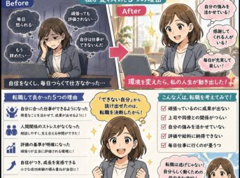 どんな人がこの記事を読むべきか ・毎日「自分は仕事ができない」と感じて苦しい人・頑張っているのに評価されず、自信をなくしている人・このまま今の会社にいていいのか悩んでいる人・転職したいけれど、逃げだと … 続きを読む 仕事ができない人ほど転職した方がいい理由|我慢し続ける前に知ってほしいこと